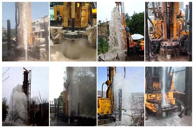 There are more white sandstone, limestone and red sandstone. Which one is faster, core drill or water well drill, with hole neck 275. water well drilling rig is to drill underground. In the future, this hole will give water. Install a pipe to become a water well.